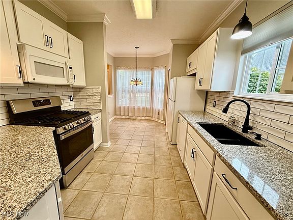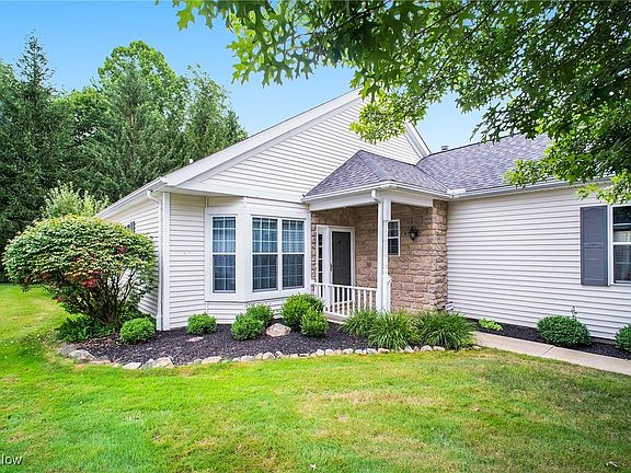 Well maintained cluster ranch in the highly sought after Woodside development in Eaton estates. Fully remodeled kitchen with granite counters, ceramic tile floor & backsplash, all soft close cabinetry, & updated fixtures. Kitchen is open to the formal dining area & great room making it ideal for gatherings. The "pocket" french doors off dining room open to the beautiful sunroom overlooking the huge patio with rain barrel & wooded views. Vaulted primary suite with private bath & dual closets can be found down the hall adjacent the great room. Second bedroom with dual closets as well. Roof replaced in 2022. Convenient laundry/utility room leads to the 2 car attached garage, which hosts a workshop area, along with pull down attic. The 9' ceilings throughout along with crown molding contributes to the bright open & airy feeling of "home". Plenty of storage throughout with the extra built-in storage/walk-in-closets within the home & garage. All appliances included. Call for your private showing today before it's gone.