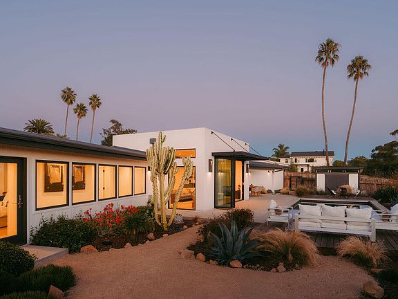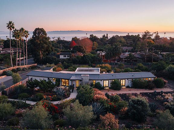The landscaped acre includes multiple fruit trees, mature avocado trees, and an array of Santa Barbara native plantings surrounding the pool, patios, and sitting areas. A charming shed offers convenient storage for beach gear. The 2-car garage includes an interior EV charger, along with an additional exterior charging station. Solar panels provide added energy efficiency.