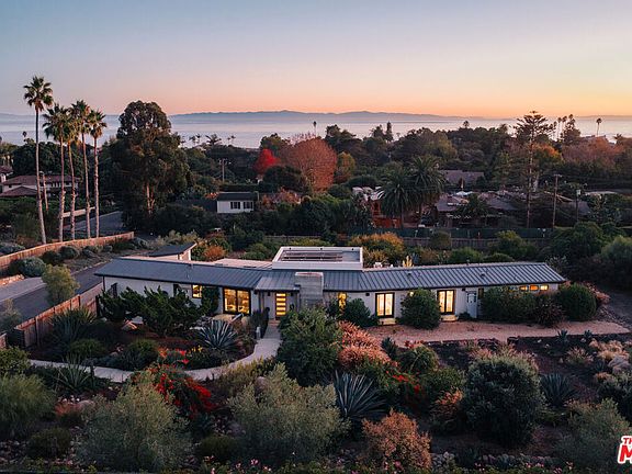 Set within a coveted enclave, 415 Yankee Farm is a private coastal retreat surrounded by one acre of curated gardens, patios, and ocean-view spaces, combining striking architecture with a luminous, glass-lined interior. Walls of glass frame the main living areas, showcasing sweeping ocean and island views and creating a seamless connection to expansive terraces and outdoor lounges. The spacious living room features a sleek fireplace and fully retractable doors that open to the pool, patios, and gardens. A defined dining area within the great room enjoys the same open views. The top-of-the-line kitchen by RD Homes includes a large center island with seating for six, premium finishes, and direct access to the outdoor fireplace lounge. Ocean and pool views enhance the kitchen's bright, inviting feel. The primary suite is privately positioned at the west end of the home with vaulted ceilings, its own patio, and garden and ocean views. The spa-style bath offers refined finishes, a walk-in shower, and a tranquil ambiance. Two guest bedrooms each feature sliding doors to the north gardens, creating a calm outdoor connection. The landscaped acre includes multiple fruit trees, mature avocado trees, and an array of Santa Barbara native plantings surrounding the pool, patios, and sitting areas. A charming shed offers convenient storage for beach gear. The 2-car garage includes an interior EV charger, along with an additional exterior charging station. Solar panels provide added energy efficiency. Located moments from Mesa amenities - Lazy Acres, local cafes, Hendry's Beach, the Douglas Preserve, and nearby shoreline paths, this property offers privacy, design, and convenience in one of the area's most desirable neighborhoods. Room for expansion adds valuable flexibility.