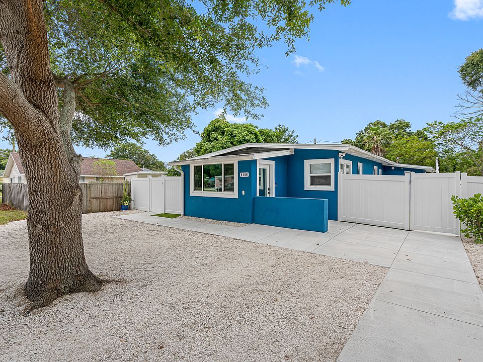 "Blue house" on 40th is a single level home fully renovated. With 3 bedrooms/2 bathroom and fully fenced backyard it is a retreat for families. Open concept kitchen and dining with plenty of seating around the island, couch or additional high top. Location is very convenient - being 10 minutes drive to downtown St Pete and 15 minutes to all major beaches.
