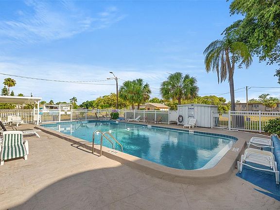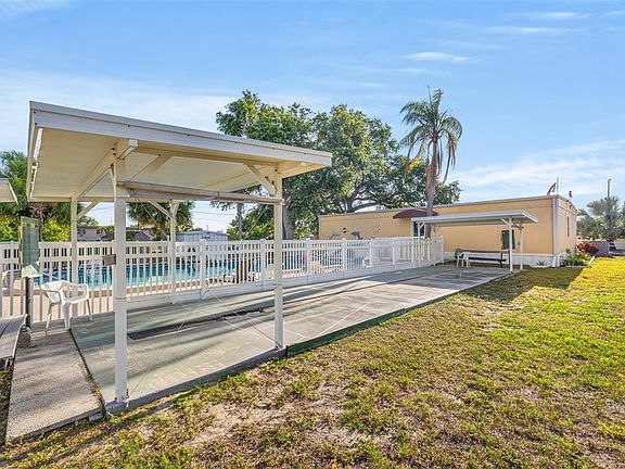 Don’t miss your chance to own a move-in-ready home in the highly desirable 55+ community of Brookside Manor—where the HOA is just $150/month! Perfectly positioned directly across from the pool and shuffleboard courts, this home offers unbeatable convenience and access to resort-style amenities. Step inside to an airy, open-concept layout filled with natural light. Recent upgrades include new flooring, lighting, and fresh paint throughout, giving the home a modern, refreshed feel. Enjoy added living space in the inviting Florida room—ideal for morning coffee or evening relaxation. The shaded lot provides a cool, comfortable setting, while the two-car carport and attached storage shed allows practicality and extra room for your tools or gear. Plus, with an in-home washer and dryer, you’ll appreciate the ease of doing laundry without ever leaving the comfort of home. Just minutes from world-renowned beaches, major airports, and a wide array of dining, shopping, and entertainment options, this location offers both tranquility and accessibility. The $22,000 share price is included in the sale—making this a smart and affordable investment in your next chapter. Schedule your private tour today and discover why Brookside Manor is the perfect place to call home!