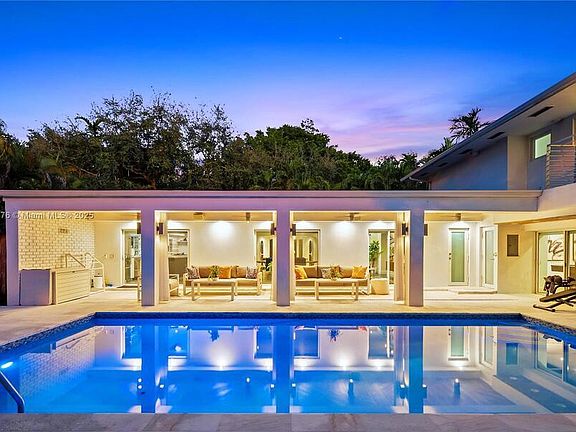 Courtesy of Beachfront Realty Inc Posted by Manuel Escotet KPI International Realty. Nestled in the exclusive Bay Point Estates, this modern contemporary home is located at the end of a quiet cul-de-sac on a sprawling 16, 988 sq ft lot with lush landscaping. The property features a heated saltwater pool, Calcutta deck with a BBQ area, and abundant greenery at the NW end, while the SW boasts a 5, 000 sq ft Zen Garden with a koi pond and brick path surrounded by Canopy trees. Inside, the home offers a luxurious master suite with a private balcony, 4 bedrooms, 3 bathrooms, an entertainment room, second living area, chefs kitchen with gas island, high-end finishes, new AC, gas generator, and a 2-car garage. Located minutes from Miamis best shopping, dining, and schools.