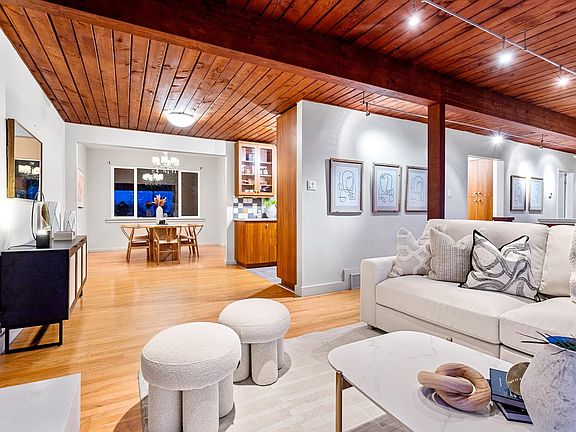 Canterbury—North Vancouver’s most prestigious address. This functional post-and-beam 2-storey home offers over 2,500 sqft of updated living space on a flat 8,165 sqft southwest-facing lot on the high side of the street. Floor-to-ceiling windows fill the home with natural light. The main level features 3 bedrooms, warm beam accents, and direct access from the kitchen and dining area to a large deck. The lower level includes a 4th bedroom and flexible space for a family room, office, or guest suite. Prime location near Edgemont Village, trails, shopping, Canyon Heights Elementary, and Handsworth Secondary.