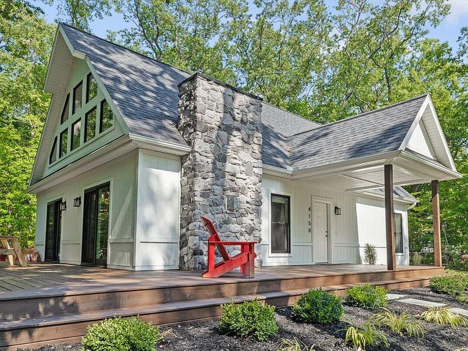 Experience modern luxury in this 2023-built contemporary cottage, just blocks from Lake Michigan! The open floor plan enhances the home's airy, inviting feel, with a soaring tongue-and-groove wood ceiling, a stunning gas fireplace, and high-end finishes throughout. The gourmet kitchen, complete with sleek quartz countertops and stainless steel appliances, flows seamlessly into the dining and living areas, while the expansive wraparound deck offers the perfect space for outdoor entertaining.