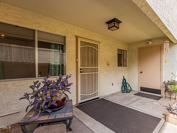 This is a beautifully updated 2 bedroom 2 bath ground level condo. It is pristine. Amazing kitchen with newer stainless steal appliances. NO carpet. Private laundry in condo. Both bedrooms have walk-in closets. Newer A/C and dual pane windows for low utility bills. Water included. Nice views of the mountains and the greenbelt from the back patio. NO neighbors behind as it backs the greenbelt! There is also front patio with a storage room. One covered parking and a lot of uncovered spots available. Nice community pool. This perfect location offering endless restaurant options, Target, Costco, Sprouts, Walmart and so much more. Near 51 Freeway Access, Public Transportation, and plenty of outdoor recreation such as Hiking, walking trails and Golf. Pets limited to 25lbs per HOA rules