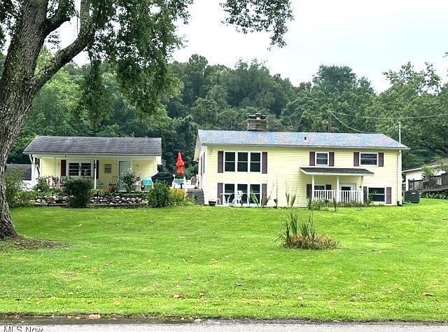 This home offers a gorgeous view of the river. 3 bdrms., 2 baths, garage space for 2 cars. Large owners suite, boat dock included, fireplaces, fabulous updates.