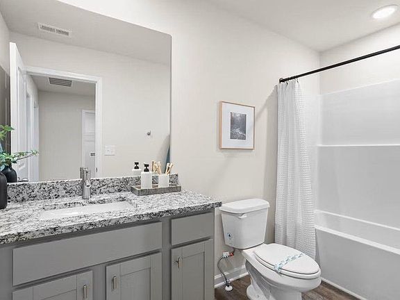 Welcome to the Monterey, a beautifully designed townhome offering both comfort and style. Enjoy the convenience of a two-car garage and an inviting open-concept layout where the living room seamlessly connects to the kitchen, creating the perfect space for entertaining or relaxing. A half bath and covered patio complete the first floor for added functionality. Upstairs, the laundry room is thoughtfully located near all bedrooms for ease. Three secondary bedrooms share a full bathroom on one side, while the spacious primary suite is set apart, featuring a luxurious retreat-style bathroom with a stand-alone tub, LED mirrors, and a large walk-in closet for your ultimate comfort.