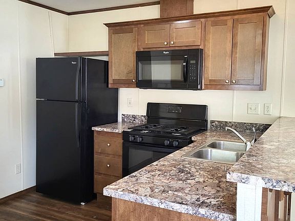 Open floorplanVinyl siding in sageCarpet flooringCentral acWarm neutral shadesBar-height seatingEasy-to-clean vinyl flooring