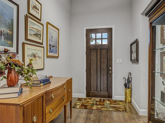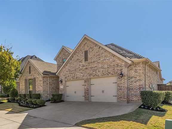 Stunning 4-bedroom, 3 full bath Windsong Ranch single story American Legend home. This one owner house is in immaculate condition and walking distance to the famous Windsong Beach Lagoon and amenities. An ideal split bedroom and open kitchen-family room floorplan with incredible natural light and cathedral ceilings. Numerous upgrades include hand scraped nail down oak hardwood floors in all living areas, double ovens, upgraded kitchen granite, built-in speakers in Family Room, 8-foot solid core doors thru, extended outdoor patio, custom Alder wood cabinets and shelf built-ins for office, family room, and dining room. The oversized office features French doors, built-ins and upgraded texture carpet. Family room is anchored with a decorative glass tile gas log fireplace and kitchen features an oversized upgraded island with front cabinets, exotic granite and tons of cabinets. All bedrooms have walk-in closets and great natural light. Washer, dryer and both refrigerators included with acceptable offer. Oversized garage is ideal for the handy and features hanging storage racks. Windsong is a premier community in Prosper with amazing amenities and over 30 miles of hike and bike trails, the famous Beach Lagoon, community resort style pools, fitness center, lakes including fishing, tennis & basketball & pickleball courts, and world-class planned activities designed for a true community lifestyle. Proximity to excellent schools on campus (including the new High School), major highways, employers, shopping, restaurants and entertainment is truly amazing.