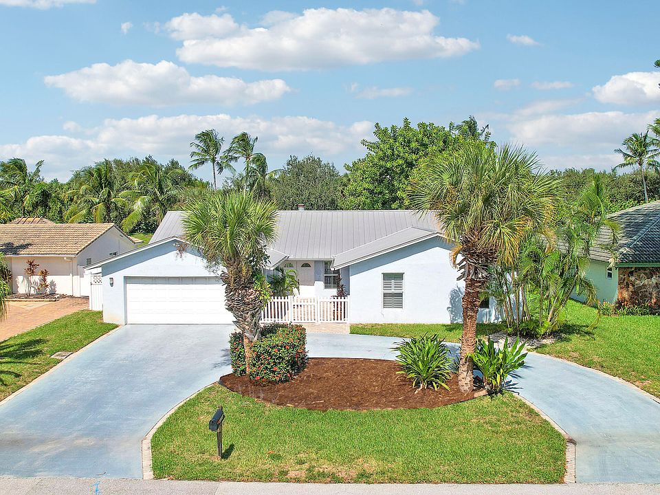 Beautiful home in Garden Woods offering unobstructed canal views. The kitchen has granite countertop and custom cabinets. Features include a new master bath vanity, Whirlpool washer and dryer (2015), water filtration system, and newer A/C units (2024 & 2017). Enjoy an expansive composite deck, fiberglass pool, circular driveway, metal roof (2005), impact windows and doors, and Hurricane Armor screen.. A maintained home built for comfort and peace of mind. Don't forget there's NO HOA just minutes from beaches, dining, shopping, I-95 & the turnpike. Location, Location!