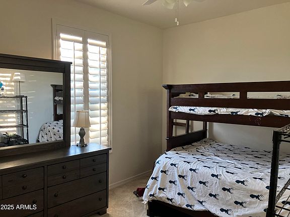 Oversized premium lot with a big backyard surrounded by single story homes for privacy. This 3-Bedroom 2-Bathroom home is located in desirable Eastmark. Tile throughout with carpet in the bedrooms. Large kitchen island with Granite countertops. Recessed lighting in the kitchen. Ceiling fans throughout. Plantation shutters on the windows facing the front of the home.