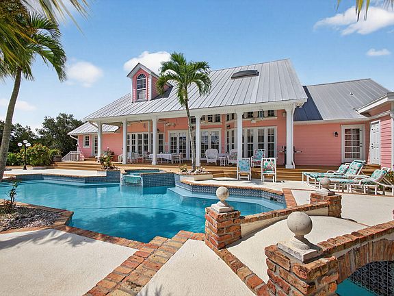 Every house has a story and this beloved farmhouse in Palm City has love and laughter in every chapter. The picturesque setting of 4.39 fully-fenced acres, mature trees, and a wooden bridge over a pond frequented by ducks, is the backdrop for this four bedroom, four bathroom home. Greet your guests from the covered porch. Gather in the living room, retreat into the family room for television or quiet time, or wander into the open and airy country-kitchen for a quick bite or a savory meal. Dine al-fresco on the back porch overlooking the pool, spa and scenic waterfall or head upstairs to the loft, a perfect space for an art studio, fitness room. An over-sized two-car garage with TWO attached guest apartments, each with its own kitchen, completes the package. Chicken coop does not convey. Close to horse trails yet easy access to town amenities.