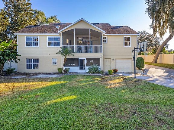 DIRECT LAKEFRONT PROPERTY with OPTIONAL HOA and gorgeous SUNSET VIEWS! Fantastic opportunity to own this charming LAKE HOME featuring PRIVATE DOCK, SPACIOUS BACKYARD with sand beach potential, cozy FRONT PORCH, CIRCULAR DRIVEWAY and IMPRESSIVE LAYOUT. Welcome inside and fall in love with the functional OPEN FLOOR PLAN perfectly designed to highlight the breathtaking LAKE VIEWS and provide plenty of space for a relaxing lifestyle and entertaining. The main level LIVING ROOM is bathed in natural light, featuring SOARING VAULTED CEILINGS and a seamless flow into the spacious kitchen and dining area— comfortable everyday family living. Relax and take in stunning lake views from the beautiful SCREENED-IN BALCONY. Expansive KITCHEN features ample space to enjoy the cooking experience: spacious breakfast bar, granite countertops, tile backsplash. Deluxe OWNER'S SUITE on the main level with elegant TRAY CEILING, spacious OWNER BATHROOM featuring dual sinks with granite countertops, large shower with two separate shower heads, jetted tub, custom-tiled walls, walk-in closet. 3 additional GUEST ROOMS are on the main level. The HUGE WALK-OUT BASEMENT is ideal for entertaining, complete with additional PRIVATE SECONDARY SUITE to comfortably accommodate guests or family or to serve as IN-LAW QUARTERS. In addition, there is a full size SAFE ROOM that can serve as the 6th BEDROOM or a HOME GYM. Spacious screened in back porch with water connection and outdoor kitchenette potential for even more outdoor enjoyment. Designated laundry room is located on the main level. The 2-car tandem garage with concrete driveway is at the rear of the home. Home exterior was recently painted. Make your dreams come true and don’t miss the opportunity to make this tranquil lakefront retreat your new home. Call today to schedule your showing appointment!