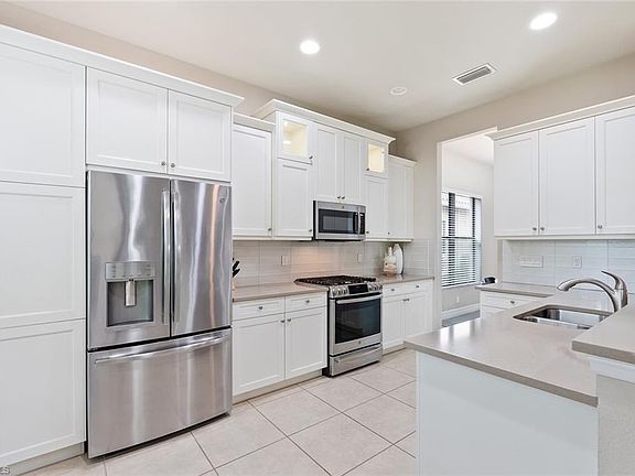 Welcome to the most desirable, family friendly and very active community in North Naples called - STONECREEK. Property is located within short distance to key destinations, such as: Logan's Landing, Seed to Table, Mercato, Vanderbilt Beach and other North Naples points of interest. This beautiful open floor plan single level home offers 3 bedrooms, plus a den, 3 full bathrooms, 3-car garage, formal dining room, breakfast nook area, beautiful fully equipped white kitchen wit stainless steel appliances, soft-close drawers, quartz countertops, and natural gas stove. Open and airy with spacious rooms throughout and plenty of closet space. Impact windows and doors on the front elevation, large backyard with plenty of room to gather and entertain, while it is walking distance across the street from the resort-style and lap pool and other World Class amenities, such as indoors & outdoors basketball courts, beach sand volleyball, tennis and pickleball courts, kids spashpark, playground, fitness center and much more