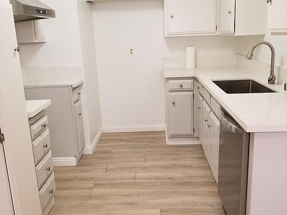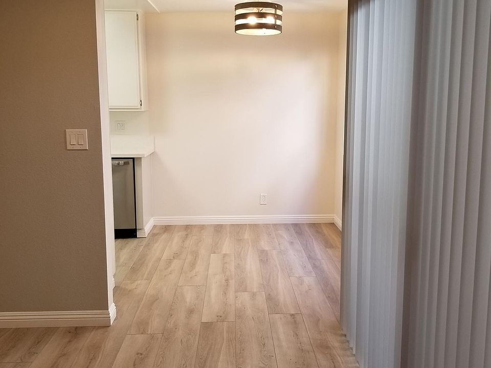 Beautiful remodel with all new LED lighting, New flooring, fresh paint, new dishwasher, sink, faucets... Barn style closet doors and new closets. Nearly everything brand new. Garage included. Don't hesitate, apply today. Very quiet. This condo does not share any walls with neighbors, only one unit above. Applications are on front door. No phone calls please. If add is up, then unit is still available. No application fee. Go see, look through windows and pick up an application. After peeking, if still interested we can then schedule a viewing. Zillow shows HOA fee which is not correct. Tenant does not pay HOA fee. Zillow also shows one year lease, that ia also not correct. Two year lease required. 2 year lease. Water, trash and hot water included. Garage included. No smoking.