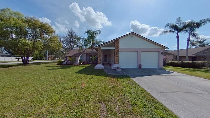 *** PLEASE NO REAL ESTATE BROKERS OR AGENTS*** The house does have a pending offer but we are accepting backup offers! Gorgeous curb appeal will pull you into this home. A meticulously landscaped yard and stonework pillars really draw your eye to this home and being on a corner lot gives you a little more space. The 2 car garage complete with built in storage shelving gives you plenty of storage space plus a spot to park the car. Inside the home you will be greeted by the living room area situated with enough room for the family to gather and a cathedral ceiling that really opens up the space. The kitchen holds great space with a breakfast bar, recessed lighting, ample cabinet space and a breakfast nook with windows surrounding for beautiful natural light. The two guest bedrooms both offer comfortable carpeting, perfect closet space and a full bathroom right outside the hallway. The master bedroom holds two closets with one being a walk-in. The master bathroom offers a separate tub and walk-in shower. Through the French doors you will be able to unwind in your large lanai. Two ceiling fans above keep the air moving. The roof above the lanai was just rebuilt.The family can spend some time in the sun and lounging in the pool. A fully fenced in backyard, private view from the road, will put your mind at ease while your kids or pets play outside. Come see this home today!