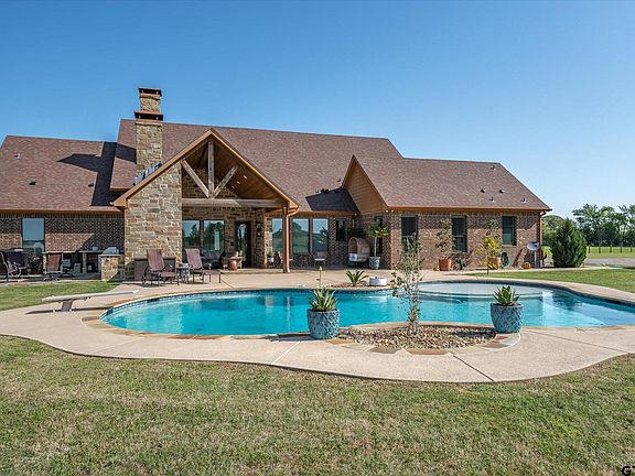 Welcome to your private oasis nestled in the heart of East Texas! This stunning 23+acre property in the highly sought-after Martins Mill ISD offers the perfect blend of peaceful country living and modern comfort. Featuring 4 spacious bedrooms, with option for office, and 2,623 sqft of thoughtfully designed living space, this home is ideal for both relaxing getaways and everyday living. Step outside to your personal outdoor paradise—take a dip in the sparkling pool with a diving board, soak up the sun on the generous sunbathing deck, or unwind in the outdoor living area complete with a built-in grill and cozy wood-burning fireplace. Whether you're entertaining friends or enjoying a quiet evening under the stars, the panoramic countryside views and breathtaking sunsets make every moment special. Additional highlights include dual road access for convenience and a serene pond that adds to the property's charm and tranquility. Located just minutes from the quaint town of Ben Wheeler, you'll enjoy a close-knit community feel with easy access to local shops, dining, and events. The property also features RV & boat storage, a workshop with electricity, half bath, WD hookups and plenty of room to roam, garden, or invite family members and make a homestead for the generations. Surrounding the house are cedar posts with field fence so bring your own Longhorns or a variety of animals and livestock. Inside, you'll find a warm, inviting layout with plenty of natural light and flexible space for family living or hosting. Whether you're looking for a weekend escape or a full-time residence, this property offers the privacy and charm of rural living—while still being conveniently located near local amenities in Athens or Tyler.