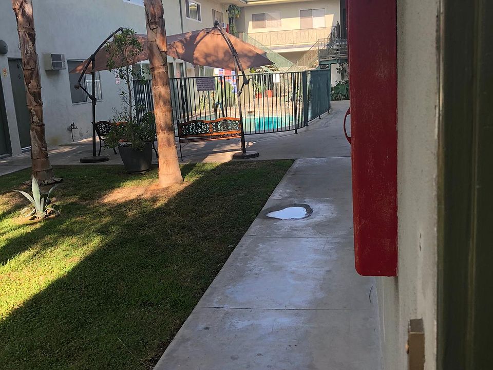 Condo style apartment in 22 unit apartment building. FIRST Floor: Front entry to Living Room, Dining & Kitchen Area & 1/2 bath . Second floor (upstairs)-2 bedroom & one full bath. All electric unit. One car gated assigned carport space. Onsite laundry. Pool. Updated windows, kitchen cabinets, new laminated living room, bedroom flooring. Pool for tenant use, no common gathering area. Limited small parking space. One car. Near El Monte Airport. Security cameras, gated. Tenant pays for electricity (all electric) landlord pays for water and trash.