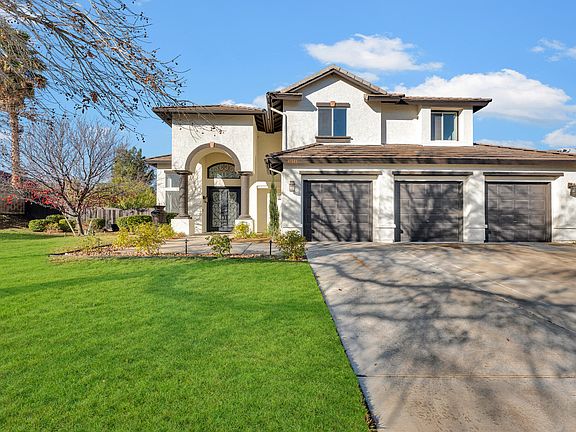 Stunning West Palmdale pool home! Upon entering, you'll be greeted by a grand entrance through massive iron doors, leading to a formal living area with high ceilings and an adjacent formal dining room. The spacious family room features a cozy fireplace and a wet bar with granite countertops, seamlessly flowing into a stunning kitchen with ample cabinets, granite countertops, and stainless steel appliances. A two-sided staircase leads to a large master suite with a walk-in closet, sitting area, two-sided fireplace, and a spacious balcony. The master bath boasts granite countertops, dual sinks, and a separate tub and shower. Upstairs, find three additional bedrooms, while downstairs offers one bedroom and a full bathroom. The laundry room downstairs is equipped with cabinets, granite countertops, and a utility sink. The backyard is an entertainer's dream with a vast covered patio, overlooking a freeform pebble pool & spa. Wireless controls for pool equipment and a built-in BBQ complete the outdoor experience. This Home also features a water softener and ADT Home Security panel.