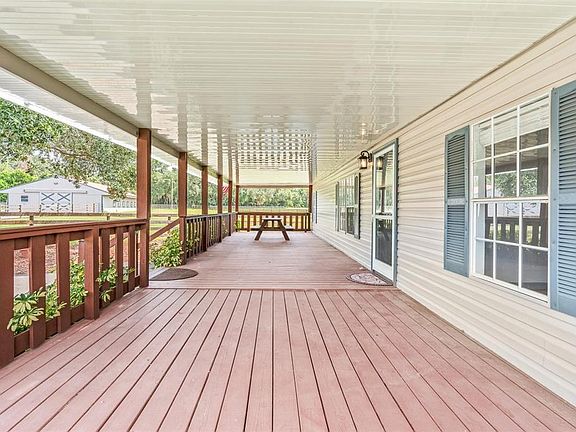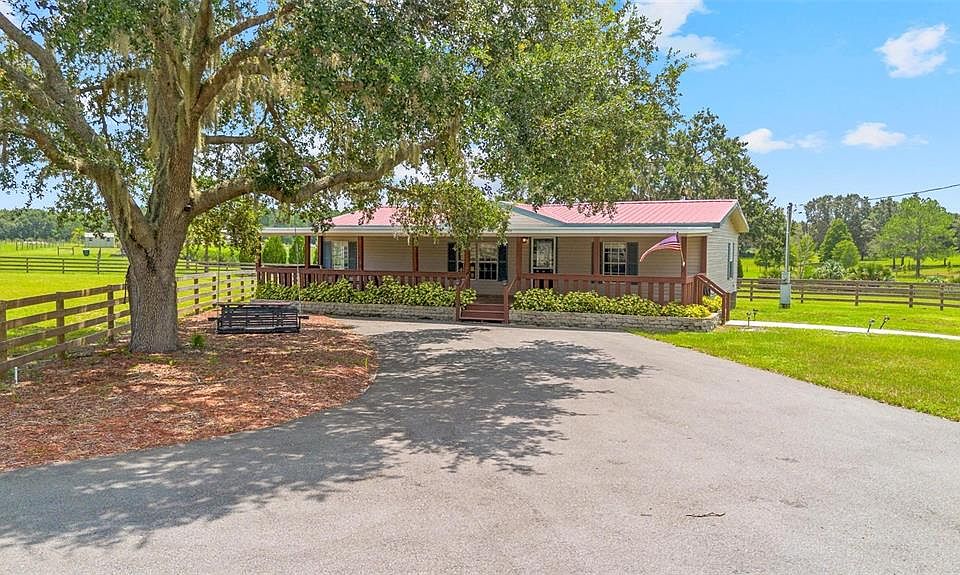 One or more photo(s) has been virtually staged. Welcome to your own private slice of country paradise in beautiful Umatilla! This remodeled three-bedroom, two-bath home sits on nearly five fenced acres, offering plenty of room for animals, hobbies, and a little breathing space. Inside, you’ll find a bright and inviting open floor plan with luxury vinyl plank flooring, granite countertops, natural pine doors, brand-new appliances, Moen fixtures, and walk-in closets in every bedroom. The cozy front porch and large screened-in back porch make it easy to enjoy peaceful mornings and laid-back evenings surrounded by nature. Whether you have horses, goats, chickens, or other livestock, this property is set up to make life easy. The 12-stall barn was originally built for mini ponies but can easily be adjusted for larger animals. It features aluminum doors, water in every stall, electricity, fans, an integrated fly spray system, a wide concrete center aisle, a wash station, and a resurfaced roof. The land is cross-fenced into four separate pastures with water access in each, and two of the pastures even have extra shelter structures already in place. ?? Bonus: the barn also offers great income potential! With just a few simple updates, you could easily rent out stalls, board horses or other livestock, or create a small farm-based business right from home. You’ll love the new patterned paved driveway leading from the electric gate with keypad all the way to the home and barn — practical, secure, and welcoming. Location is another win here. You’re less than a mile from the Lake Yale boat ramp (great for fishing, boating, and exploring) and just down the road from Sawgrass Island Preserve with over 1,100 acres of riding and hiking trails. Despite the peaceful, private setting, you’re only about 15 minutes from town and Publix — the best of both worlds. If you’ve been dreaming of a little homestead, a hobby farm, or simply a home with space to spread out and breathe, this property has everything you need — comfort, versatility, and room to grow (or earn!).