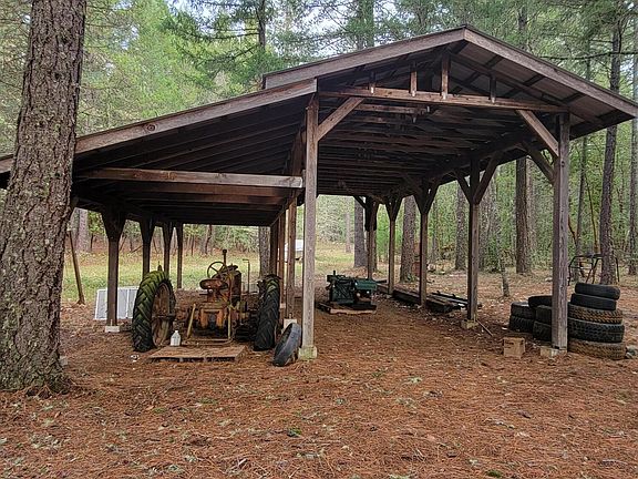 Open pasture between house and road. 7.19 ac of the 12.19 is woodland old growth timber property behind the house. In addition to the 3 bedroom, 2 bath home, there is a separate cabin, an additional shop w/concrete floor (18x32), more sheds and storage and a 24x40 hay cover building. There are some irrigation pipes on the property but it has not been irrigated recently and may need a new pump. Buyer to do due diligence re water rights. There is a fireplace and wood stove in the main house. Large laundry area with lots of storage/cupboards, family room has wood stove adjoining kitchen with large sliding glass door out to patio area. There is a fireplace in the living room and lots of windows in the living room and kitchen allowing light to come in and a nice view of the pasture and mountains beyond. The patio attached to the home needs some new screening for additional outdoor summer entertainment. This could make an awesome homestead if you are looking for a mix of pasture and woods.