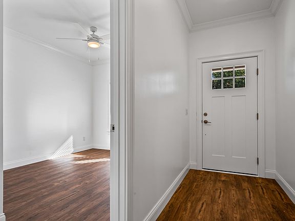 Beautiful 3BR/2BA new construction home in the peaceful Green Meadows neighborhood, situated on just under half an acre. This home features an 11-ft tray ceiling with wood accents and LED lighting, board and batten exterior siding, and an oversized 2-car garage. Interior highlights include crown molding throughout, quartz countertops, luxury vinyl plank flooring, and kitchen appliances (microwave, range/oven, and refrigerator) to be installed prior to closing. The spacious primary suite offers a tray ceiling with LED lighting, a tiled double-head walk-in shower, double vanity, and walk-in closet. The laundry room provides extra storage and counter space. Enjoy a full front porch and a covered back patio with an industrial fan—perfect for relaxing outdoors. Conveniently located near downtown shopping, medical offices, and all the amenities Marianna has to offer. Buyer to verify all measurements.