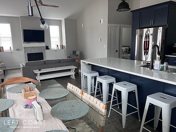 Welcome to your perfect coastal retreat! This brand new, fully furnished home is located in a beautiful and clean neighborhood just a short drive from the stunning beaches of Lincoln City, Oregon. Step inside and you'll be greeted by a spacious and bright living area, complete with comfortable seating and a large flat-screen TV.