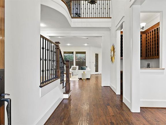 Superb, recently updated transitional home adjacent to SOPAC trail. Newly painted with hardwood floors & raised ceilings. Soaring entry w dining room lead to impressive butler's pantry. Gourmet kitchen features white quartz counters & backsplash, updated fixtures w Thermador gas range & panel front fridge. Separate raised study w 2-story ceiling height, paneled walls & shelves. Spacious downstairs owners suite has spa-like bath w frameless shower, jetted soaking tub, dual vanities, & generous walk-in closet. Also additional downstairs bedroom. Massive gameroom with wetbar & adjoining media room. Custom garage storage with workbench & epoxy floor. Pool-ready backyard w covered patio, FP & built-in grill.