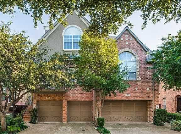 High-end brick & stone executive corner townhome, located at the rear of tree-canopied lakeside community, absent vehicular traffic. Ample natural light showcases gleaming hardwood floors throughout the ENTIRE residence! Kitchen features Bosch appliances, gas cooktop & illuminated granite countertops. Master retreat with soaring ceilings flows naturally into the spacious en-suite bath. Walking distance to popular restaurants, parks, miles of interconnected trail system, & the Addison Athletic Club. Don't miss the office or 4th bedroom, LED lighting, epoxy garage floors, wrought iron balusters & very private backyard with recently built tiered deck... perfect for evenings outdoors. Turnkey living at its finest!