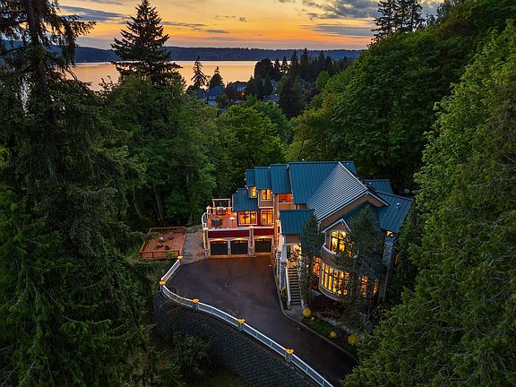 Lakefront View Luxury: Nestled along the serene hills of Lake Sammamish, offering panoramic views and a tranquil living environment. This 5 bedroom, 4 bedroom home boasts lake views and or forest views from nearly every room. Enjoy the expansive kitchen with Monogram appliances, refrigerator, 2-ovens, range stove, warming draws, wine cooler, ample cupboards and a center island that comfortably seats four. Enjoy the cozy family room with boxed ceilings and river rock fire place that leads out to a generous porch with views of the lake.