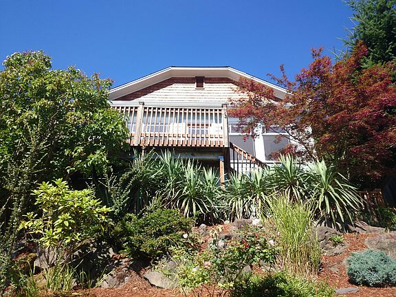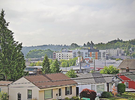 Perched high above the street, sip your morning coffee enjoying sweeping views of the Cascade mountains & Mt.Rainier. A wall of windows fills the living/dining room w/light. Stylish design throughout: remodeled kitchen, hardwood floors, claw-foot tub, walk-in closet, lower level separate entrance. Potential for rental opportunity. Terraced VIEW backyard garden space ready for summer BBQ's. 2 off alley parking spaces. Blocks from West Seattle Junction, Farmer's Market, Trader Joe's. Walkscore 88!