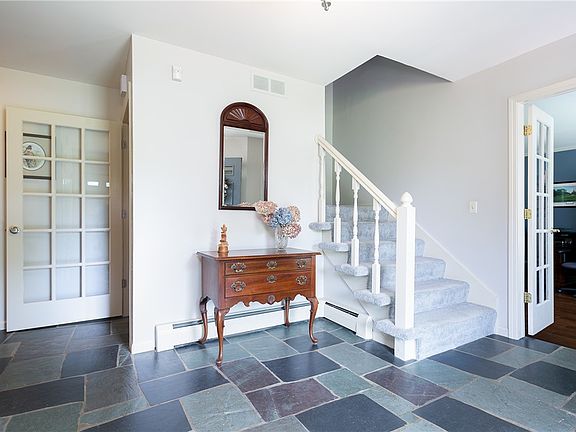 Welcome to this charming 2 story Tudor-style home. Showcasing over 4000 square feet of beautifully finished living space. Upon entering, you'll be greeted by the elegance of formal dining and living areas, perfect for entertaining guests. A 1st floor office with pocket doors offers privacy and convenience. The updated kitchen is a true delight, featuring hardwood bamboo floors, ample cabinetry, & a large pantry to satisfy all your storage needs. Adjacent to the kitchen, you'll find a heated three-seasons room that opens to a deck w/ a pergola & a soothing fountain, creating a tranquil retreat for relaxation and outdoor entertaining. You'll also find a spacious 2.5 car garage, providing plenty of room for vehicles and additional storage. For added convenience, the home offers both first and second-floor laundry options. As you ascend the staircase, you'll discover the generously sized bedrooms, adorned with new carpeting and featuring a sink in each suite. The primary suite is a true oasis, a wonderful custom closet and luxurious dual sinks. Enjoy the comfort of heated floors. The lower level of this home has been thoughtfully finished to provide even more space for relaxation and entertainment. A living room, activity area, and exercise area await your personal touch. The home is equipped w/ a security system and a six-zone heating system, providing peace of mind and optimal comfort year-round. Meticulously maintained, this home offers both timeless charm and modern updates.