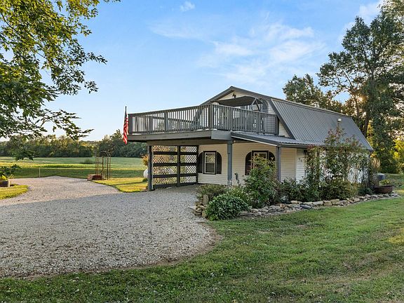 This property offers an excellent opportunity for those seeking the perfect blend of country living on 6.057 acres located near Boonville. This charming two-story house has been completely remodeled and updated, featuring a new exterior with vinyl siding, gutters, soffit, trim, insulation, and a metal roof. The first floor boasts an open layout, eliminating the walls that separate the two rooms. The kitchen is equipped with wood cabinets, new countertops, and a stylish backsplash. The living room and kitchen have new wood flooring. There is an updated bathroom on the first floor that includes a tile floor, a vanity, and a tub/shower combination. The utility room is conveniently located just off the kitchen, offering washer and dryer connections and ample storage space. Open stairs lead to the primary bedroom, which occupies the entire second floor. This spacious room includes a generous walk-in closet and a private half bath with a pedestal sink. You can enjoy your evenings on the newly built 12' x 19' wood deck, which has a private entrance off the bedroom. This property also features a two-car carport and a spacious driveway leading to a 32' x 30' metal garage with a metal roof. The detached garage features a concrete parking bay for your vehicle, along with three large wooden horse stalls, each equipped with a metal frame sliding door and feeders. There is an overhead door for vehicle access, an entry door, and a sliding door for equipment access. White vinyl fencing highlights the front acreage, driveway, and the garage, which was previously used for horses. The remaining land surrounds and lies behind the garage. The landscaping enhances the country charm with large trees and a carefully selected array of colorful, blooming flowers and plants, each suited for a specific season. This home is move-in ready and offers endless possibilities, providing a serene atmosphere for you to enjoy your favorite hobbies and pastimes in privacy. Don't miss the opportunity to move to this mini farm you've always dreamed of!