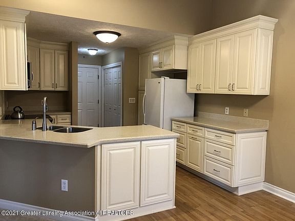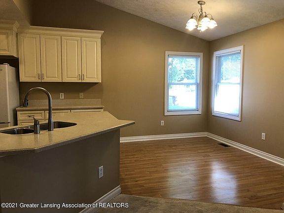 Maintenance Free 3BR, 3BA Ranch, gas fireplace, 1st floor laundry, 2 car garage. New Kitchen 2019, new carpet in 2019. Finished lower level with daylight windows, family/rec room and 3rd bedroom. Lots of storage. Deck to back yard. Great location too highways, MSU, and downtown. Newer Roof. Showing time: Go and Show.