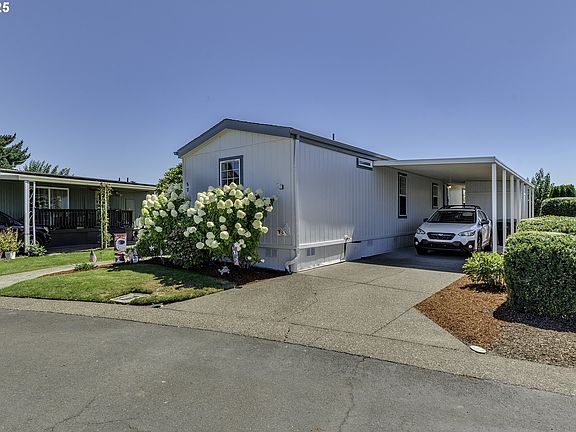 PRICE REDUCED! Welcome to Olde Stone Village — McMinnville’s premier 55+ manufactured home community! This beautifully updated single-wide home sits on an oversized lot and offers a bright, vaulted open floorplan with stylish modern touches throughout. Recent upgrades include: Kitchen~Quartz countertops, center island, updated appliances; Primary Bathroom~ Walk-in closet, built-in vanity with smart mirror, walk-in shower, and a new access door leading to the patio; Backyard~ Southern exposure, lush with flowering perennials, complete with a sprinkler system; Interior: Newer laminate flooring and updated lighting throughout, fresh paint; Newly painted exterior and interior for a crisp, clean look; Outdoor Features: Covered side porches, extended carport, and a separate 7x5 tool shed for extra storage. Vibrant, welcoming community offering pool, pickleball/tennis court, gym, recreation center, park and next to Evergreen Museum and Splash Park. Come see it for yourself!