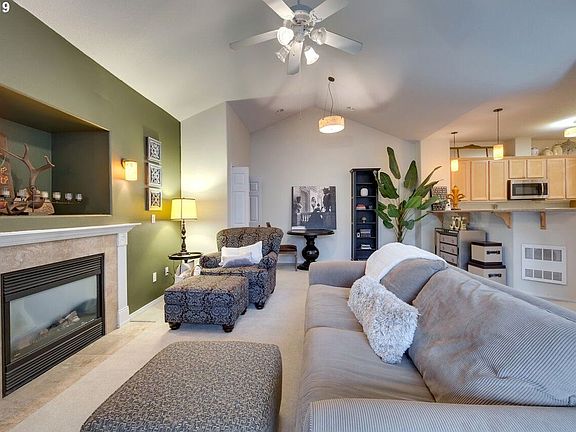 Excellent value in this well priced 1 bedroom, 1 bathroom condo located in this gated community of West Linn. Features a bright, open floorplan, spacious living room w/ gas fireplace, vaulted ceilings, covered balcony, flex office space, kitchen pantry, walk-in closet, and a new high efficiency heat pump for heating an cooling. Won't last at this price!