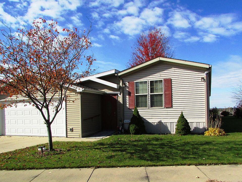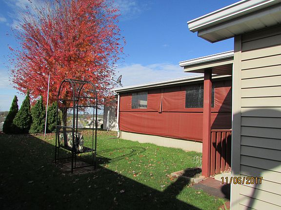 One owner, well maintained manufactured home, landscaped and located on a scenic lot on a hill with amazing views on a cul-ve-sac street. Home includes a two car garage with a covered access ramp to a 12X25 ft. deck that can be open or enclosed with rollup canvas enclosure and windows on the south side and, a permanent wall on west side with a 46 X 46 awning window. Front entrance also has a 5 ft. wide X 22 ft. long access ramp. Kitchen features a pantry, an island with sink, breakfast bar and overhead cabinetry with double access doors in frosted glass. Also, a matching built in buffet with frosted glass doors and sliding glass doors to deck. Master suite features a walk-in closet and bathroom with double sink and large walk in shower. Home has ceiling fans in all bedrooms and living room. Plenty of sunlight with 3 skylights located in master bath, kitchen and guest bath. Home includes two rooftop satellite dishes for DISH and DIRECT TV. Home has gutters and downspouts. A must see! Price negotiable to qualified buyers. Possession at closing.