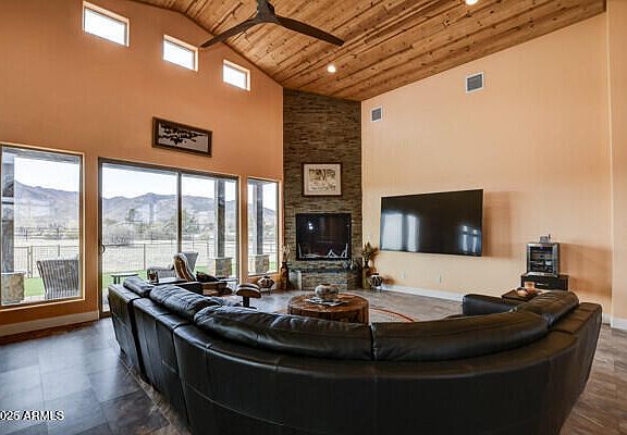 Welcome to a captivating home where beauty and functionality blend seamlessly in the sought-after American Ranch community. This exquisite 2,559 sft 3 bedroom 4- bathroom retreat is situated on a generous 4 acres and is perfect for horse lovers, offering ample space for your equine companions. As you step through the front door, your greeted by a warm and inviting atmosphere inviting you to experience the serene Prescott lifestyle The open concept living area optimizes space and light with vaulted wood detailed ceilings. The spacious modern kitchen boasts beautiful cabinetry, complimented by gorgeous quartz countertops and a large walk-in pantry, perfect for entertaining. Nestled in the backdrop of the magnificent Granite Mountain, providing breathtaking views from sunrise to sunset.