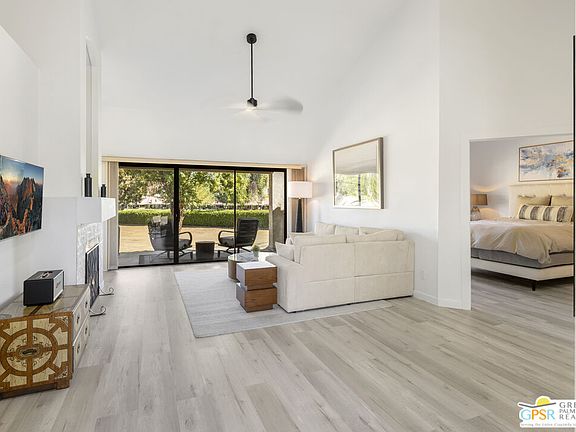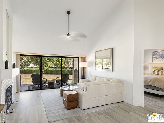 Turnkey End Unit with Green Belt & Mountain Views in The Resorter. Welcome to classic desert living in this beautifully updated 2-bedroom, 2-bath home located in the highly desirable Palm Desert Resort & Country Club (aka The Resorter). This move-in-ready end unit feels more like a detached home, with only one shared wall, no shared driveway, and a private setting that enhances comfort and tranquility. Step inside to discover a light and bright interior featuring vaulted ceilings, fresh paint, new laminate flooring, and a stylishly updated kitchen with luxury appliances. The spacious open-concept living area includes a cozy fireplace and large windows that frame stunning green belt and mountain views. Designed for privacy, the two bedrooms are thoughtfully positioned on opposite sides of the home. The primary suite offers a walk-in closet, a large ensuite bathroom, and more breathtaking views. Enjoy direct access to a two-car garage and an additional two-car driveway a rare find in the community. Offered furnished or unfurnished, this turnkey home is just a short stroll to the pool, pickle ball, tennis, bocce ball courts, golf course, pro shop, cafe, and clubhouse. The guard-gated community features multiple pools and spas and is only minutes away from El Paseo's renowned dining, shopping, and entertainment. Whether you're seeking a primary residence, vacation home, or short-term rental investment, this gem checks all the boxes.