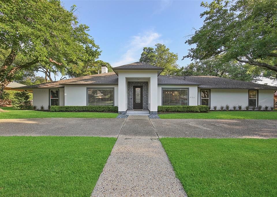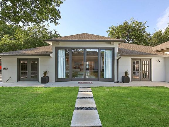 Modern farmhouse ranch in the city. With Magnolia Market style, this home has been thoughtfully updated. Bright open spaces with gorgeous pine and walnut floors throughout. Great room boasts soaring ceilings with floor to ceiling windows and doors lead outside to a separate cabana style covered outdoor living room complete with gas fireplace feature. Kitchen with large marble island overlooks 2 living spaces- an entertainers dream! Huge master suite with ensuite study or 4th living space. Split bedroom layout. Tons of storage closets through in addition to large utility mud room and giant pantry big enough to incorporate a small office space. Fantastic location in the heart of the private school corridor.
