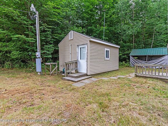 Beautiful piece of vacant land in northern Michigan! Approximately 17 miles away from Lake Michigan! Sprawling 9.75 acres, mostly wooded lot with a 12x16 outbuilding. Private well and septic on property and hooked up, 200 AMP electrical service hooked up. Outbuilding has a washer/dryer hookup, sink, shower and toilet. Two gated entrances with a circle drive, convenient for pulling in campers and toy haulers! Wood deck for pulling up your camper and having a nice area for setting up your chairs, hammocks or whatever helps you relax! This property offers a place where you can travel to for those fun Michigan summer getaways or venturing north in the winter to catch the best riding trails! Don't wait, this won't last long! Property is being sold AS-IS.