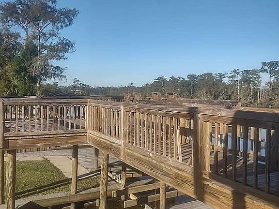 One of the first camps situated on the Calcasieu river on Goos Ferry Road. Addresses are 4156 on water side and 4249 on road side. They are directly across from one another. On the roadside is a 40 x 50 shop with 16 foot ceilings full spray foam insulation has heater and air conditioner. Also has large front awning and one side awning. . Shop has four huge rollup doors and three regular door entries. Awning on one side has full RV hook ups and it’s also spray foam insulated. It also has a half bath and a washer and dryer which are included. There is another RV hook up in the driveway with plenty of room for a large RV. . Full deck with one boatlift and two JetSki lifts included. Water side has full bulkhead