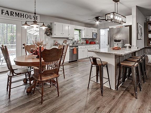 Looking for a house in the country, look no further. Beautiful updated 3-bedroom 2 bath on 5 acres wooded land. Kitchen features stainless steel appliances and granite counter tops. Laminate flooring throughout. The living room, dining and kitchen are open concept layout. Feel free to exit from the dining room to a huge deck built around an above-ground swimming pool. Great for entertainment. Updates include laminate flooring, roof, heat & air, siding, smoke detectors, light fixtures, ceiling fans in bedrooms. This is a must see!