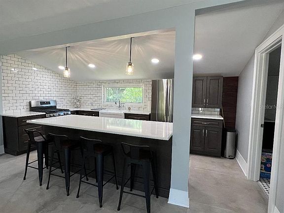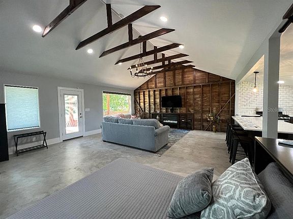 Rent just REDUCED to $1,500.!! Minimum 6 month lease. FULLY FURNISHED, REMODELED STUDIO, includes linens (sheets bath towels), dishes, nice Flat Screen TV, gorgeous electric fireplace- just bring your toothbrush personal items and MOVE RIGHT IN! Minimum lease 6 months. You will love the top of the line, modern upgrades including gorgeous Quartz countertops, tiled backsplash, Farmhouse Sink, modern design kitchen with classy grey wood cabinets throughout, including a HUGE Island for a wide-open concept kitchen family room combo, Gas Stove with all new Stainless-Steel Appliances. This Studio is light and bright with all new light fixtures throughout, and plenty of room to spread out with eating space at the Breakfast Bar. The large family room boast brand new comfortable furniture with a HUGE mounted TV on a stained wood accent wall. You will love the matching wood beams across the ceiling and the electric Fireplace below the TV that can produce heat for the cool nights or a relaxing ambiance anytime day or night. The Queen-size Murphy Bed allows you to create more room by tucking it away or enjoy additional sleeping area with the twin size pull-out bed in the oversized chair in the living room for an overnight guest. The bathroom is all brand new with all glass stand-up shower, gorgeous tile flooring. Enjoy sitting outdoors on the Pergola with benches and enjoy the gorgeous Florida Weather in this cute country setting. Best of all, this unique Studio is located in Central Florida, close to the many attractions in all directions with I-4 just a mile away. Go East and you're in Orlando at Walt Disney World and many other attractions in less than an hour. Go West and you will enjoy Florida's beaches, Downtown Tampa, Ybor City in less than an hour! Enjoy many other nearby attractions including TopGolf, TGH Ice Plex, Busch Gardens, Lowry Park Zoo and about 40 minutes to Tampa Bay Lightning Stadium and Tampa Bay Buccaneers Stadium. Everything you will need is included! Hurry, this one won't last! Call today for your private showing.