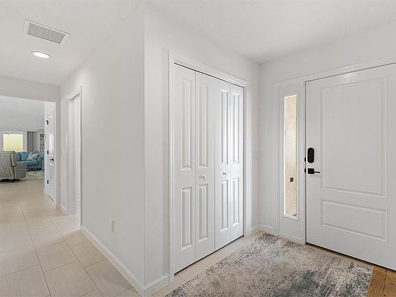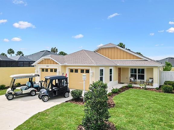 Why buy brand new when you can buy BARELY LIVED IN with a TURNKEY OPTION and 2 GOLF CARTS AVAILABLE SEPARATELY!!! This 3 bedroom 2 bath WINSLOW BUNGALOW COURTYARD VILLA was built in 2023, has 1794 sq ft of living space and an additional 220 sq ft screened lanai. Village of DeLuna, in MILA VILLAS, where walking trails, pools, archery range, golf and a dog park are just a short distance away. Situated on an end of street private homesite, there's no busy traffic here. You are greeted with flowering plants and an inviting front porch + 6 inch guttering adorns the whole house. Enter this lovely Villa, and immediately fall in love with the FOYER CLOSET, large open concept floor plan and kitchen island. Plentiful cabinets with pull-outs, high definition countertops, and WALK-IN PANTRY will make your cooking and entertaining so easy. The laundry room has a set tub and a new WASHER/DRYER with the TAGS STILL ON THEM. Carpet in the 3 bedrooms and TILE flooring can be found throughout the rest of the home. Your primary suite features a TRAY CEILING, walk-in closet, DUAL SINKS, ROMAN SHOWER, private toilet area + BB2000 BIDET. The guest bathroom also has a BB2000 BIDET. All rooms have ceiling fans and blinds. The screened lanai measures 22x10 and opens to the FENCED private courtyard and patio area, perfect for your 4 legged friends. The 2 car garage has a PAINTED FLOOR and measures 24x22 so there is plenty of room for car & golf cart and so much more. Home also features a whole house NOVA WATER filtration system. You are just a golf cart ride away from the BROWNWOOD Paddock Square, the new EASTPORT, Ednas on the Green and the Magnolia Shopping Plaza. ENTIRE TURNKEY PACKAGE INCLUDING BABETTE'S FURNITURE/DECOR/DISHES/FLATWARE/COOKWARE/LINENS & TOWELS/TV'S/LANAI FURNITURE AND 2 GOLF CARTS AVAILABLE SEPARATELY! Don't forget to watch the video and come see this amazing villa TODAY!
