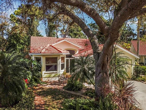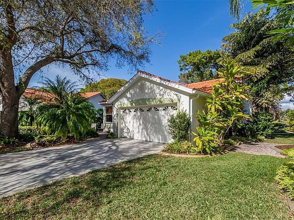 IMPORTANT UPDATE!!! NEW PRICE AND NEW PAINT. Villa has fresh, neutral interior paint. This is not your mother's villa! One of the most unique and desirable villas located on a quiet, private cul-de-sac. Lush, tropical landscape adds seclusion between lanais and backs up to a Wetlands Preserve, and Lake of the Woods beyond. The extensive landscaping features curbed planting islands featuring orchids and native flora. This Venice Area Garden Club Tour of Homes venue was the only Southwood villa ever selected. The breakfast room view features a tangelo tree with naturalized orchids and stag horn ferns, with another dozen prize-worthy orchids around the home. The interior decor of this 2 bedroom plus den, 2 bath, 2 car garage home was done by a professional artist focusing on a true tropical Florida theme. No carpets - laminate and tile throughout. Lots of custom built-ins for extra storage. Hard surface countertops in the kitchen with refaced cabinets and soft-close drawers. Just off the breakfast room is the tiled Florida room with sliding windows to the caged lanai. The room's northern exposure keeps the room cool and airy. Tile roof and H2O tank (2018), and HVAC (2016). Located near Venice and Englewood beaches, stores and restaurants. Close to the Atlanta Braves new spring training stadium. Ready to move into today. Many custom features and unique finishes. Request 'Owner Upgrades' document in Attachments. Southwood is a very socially active community with a heated, community pool. Owner enjoys neighborly social activities, including an annual block party where residents meet and greet.