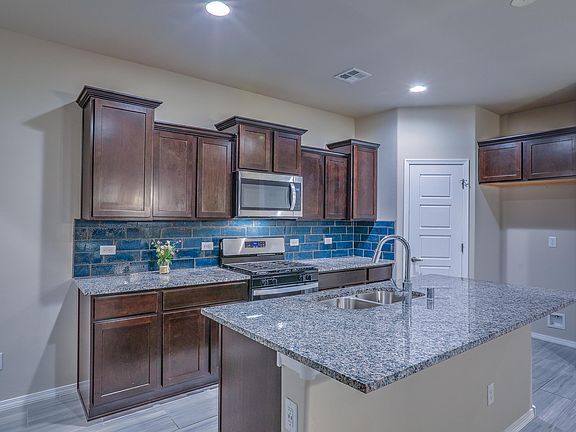 Modern design and like-new condition at a great price. Stunning mountain views from the kitchen, LR, and DR. Open-concept floorplan and sightlines create connection and flow. Beautifully appointed kitchen anchored by a granite island that provides ample prep space and casual seating. Custom cobalt backsplash adds a bold, designer touch. Tray ceilings elevate the main living areas, adding architectural interest and a sense of spaciousness. Large windows frame the mountain views and fill the home with natural light. 5 bedrooms are arranged in a highly desirable split floorplan. Primary en suite includes dual-sink vanity, roll-in shower w/bench, and luxurious rain showerhead. Tile showers throughout add a polished, upscale look. Fantastic opportunity at a price that can't be beat!