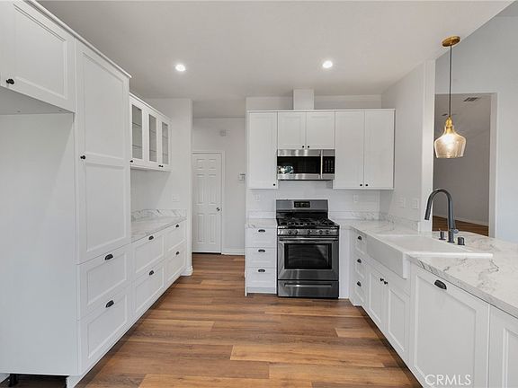 Here's the one you’ve been waiting for! Beautifully updated and move-in ready! This single level home in the Rancho Vista neighborhood of West Palmdale offers 4 bedrooms, 2.5 baths and an attached 3 car garage. The light and bright kitchen features new appliances and fixtures, and has both a breakfast nook and counter seating options that open to the family room. In addition, there is a formal dining room and adjacent living room. The master suite has a spacious bathroom with dual vanities, separate tub and large shower. The private backyard provides amazing views as well as a covered patio and refreshed landscape making it a relaxing space to entertain or just enjoy the sunsets. Other amenities include 3 secondary bedrooms that could double as flex space for a home office or gym and there is even a convenient laundry room with abundant storage. Don’t miss this opportunity!
