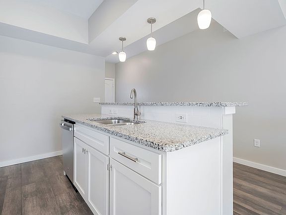 Spacious two-bedroom two-bathroom homesPrivate patioPrivate entriesOffice nookWhite shaker cabinetryIn-unit washer and dryerPendant lighting