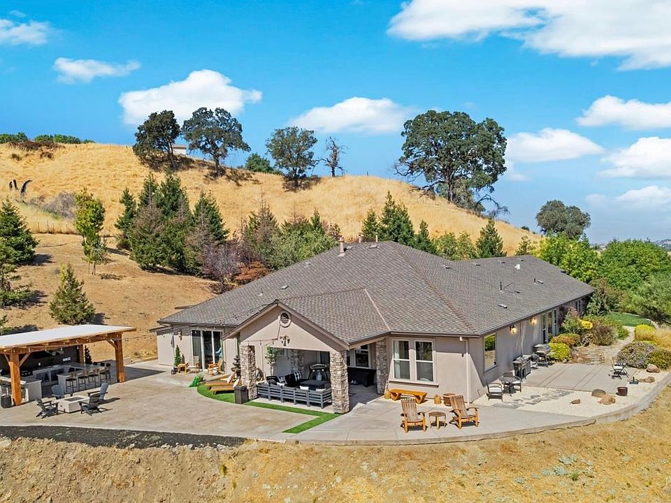 Escape to your private country retreat just a few miles from downtown Vacaville. Nestled on 6.23 acres at the end of a private drive, this 3,500 sq. ft. custom estate combines sweeping views, unmatched privacy, and elevated living. With 4 bedrooms and 4 bathrooms, the residence has been thoughtfully upgraded with rich hardwood flooring, fresh designer paint, quartzite kitchen counters, a custom island, and upgraded fixtures. View the countryside through Premium Simonton dual-pane windows. The open-concept design flows seamlessly, offering refined elegance for both everyday living and sophisticated entertaining. The family room centers around a striking gas fireplace with stone surround, while the primary suite offers its own gas fireplace for cozy winter nights. Outdoors, a true entertainer's paradise awaits. An outdoor kitchen with Blackstone grill, granite counters, ice maker, and ceiling fans are complemented by a propane firepit, stamped concrete patios, and a spa-ready setup overlooking rolling hills. A two-car garage, RV awning, and detached garage/workshop with RV parking complete the property. 4157 Shelly Lane isn't just a home, it's a statement of luxury, comfort, and timeless style.